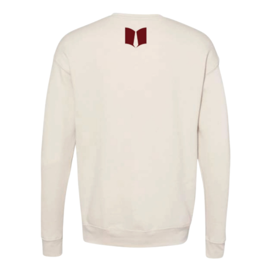The design inspiration came from the late great Maya Angelou who wrote the immortal "I Know Why the Caged Bird Sings" poem which was published in 1983. This was my way of paying homage to her beauty, her genius, and her greatness. The tree branches and bird cage are in a maroon color which lays beautifully over the Heather Dust colored Crewneck.