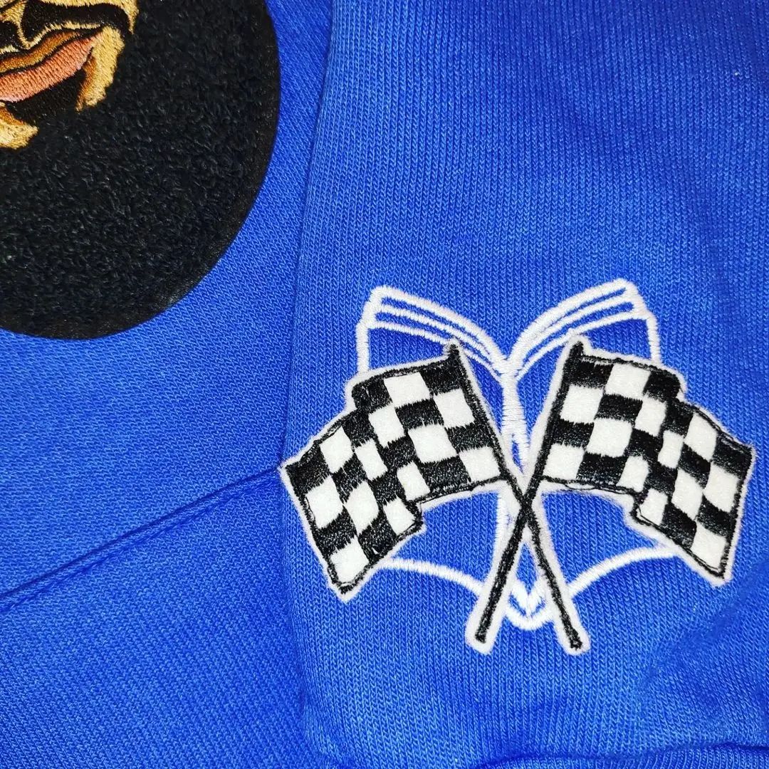 The Unscrypted wording is in 3D Embroidery on the chest and the book logo is in 2D Embroidery on the sleeve of the hoodie. Nipsey Hussle's face is a Chenille/Embroidered patch which lies below the Unscrypted towards the left side of the hoodie. There is an embroidered checkered flag which lies over the fashion book and also an embroidered "Nipsey Forever" patch on the left shoulder blade.